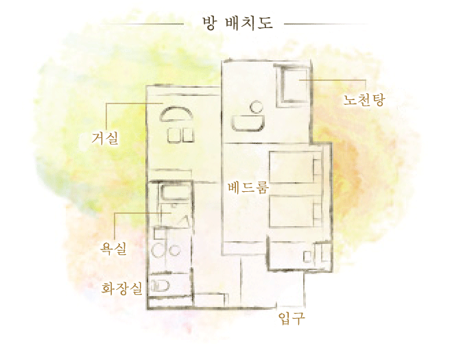 【방 배치도】거실+트윈 베드 노천탕 포함【정원】1~2명