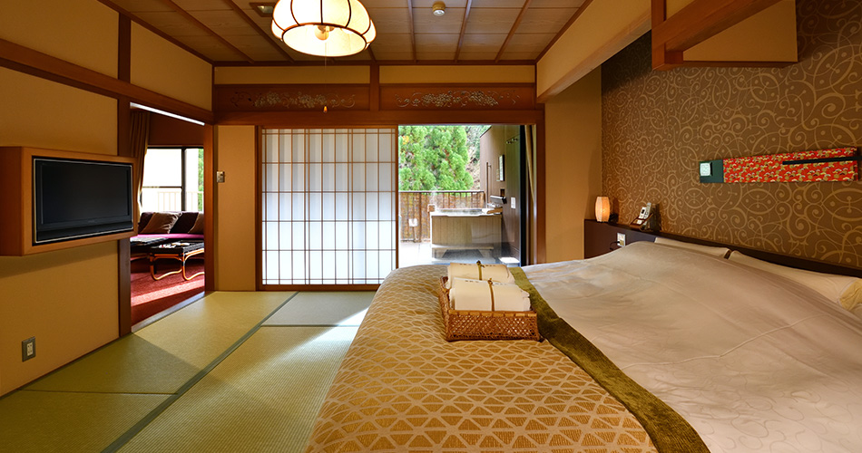 【間取り】リビング+ダブルベッド 露天風呂付き【定員】2名